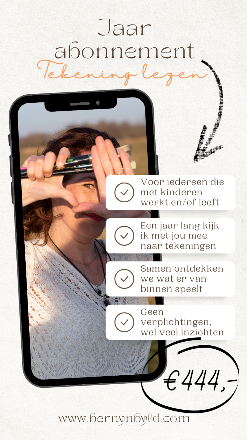 Met dit jaar abonnement kun jij als praktijk, school, instelling, professional of ouder wekelijks inzichten ontvangen naar aanleiding van een tekening die jij mij via mail of WhatsApp stuurt. Je ontvangt tips voor de vervolgstappen of een traject die mij passend lijkt voor de tekenaar en zijn/haar omgeving. Het kan ook een simpele aanpassing zijn in de omgang met het kind die al kan zorgen voor nieuwe inzichten. Mega waardevol he!
